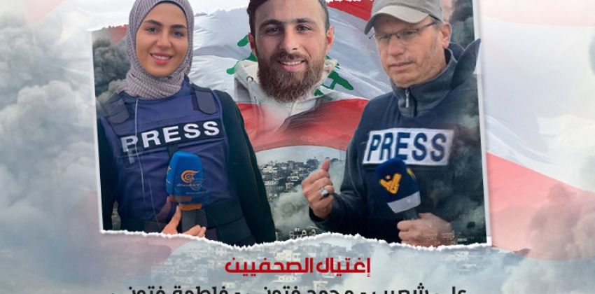 The journalists Support Committee condemns the crime committed by the Israeli occupation forces, represented by the direct targeting of media crews today in the Jezzine region – southern Lebanon, which resulted in the assassination of reporter and media Ali Shoaib from Al-Manar TV, reporter Fatima fatoni and photographer Mohammed fatoni, from Al-Mayadeen TV, while performing their professional duty in reporting the war on Lebanon.